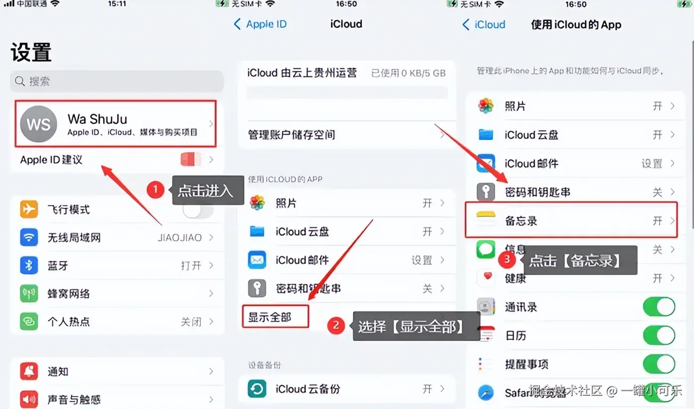 方法二:通过iCould找回备忘录