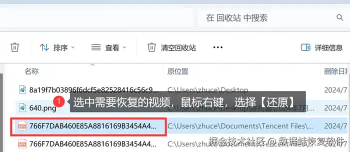 备注: 如果视频在回收站被彻底删除,则不适用于该方法。