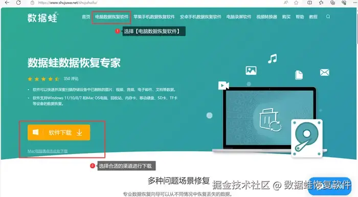第一步: 在浏览器上搜索【数据 蛙恢复专家】,然后打开官网,选择自己合适的途径进行下载安装。