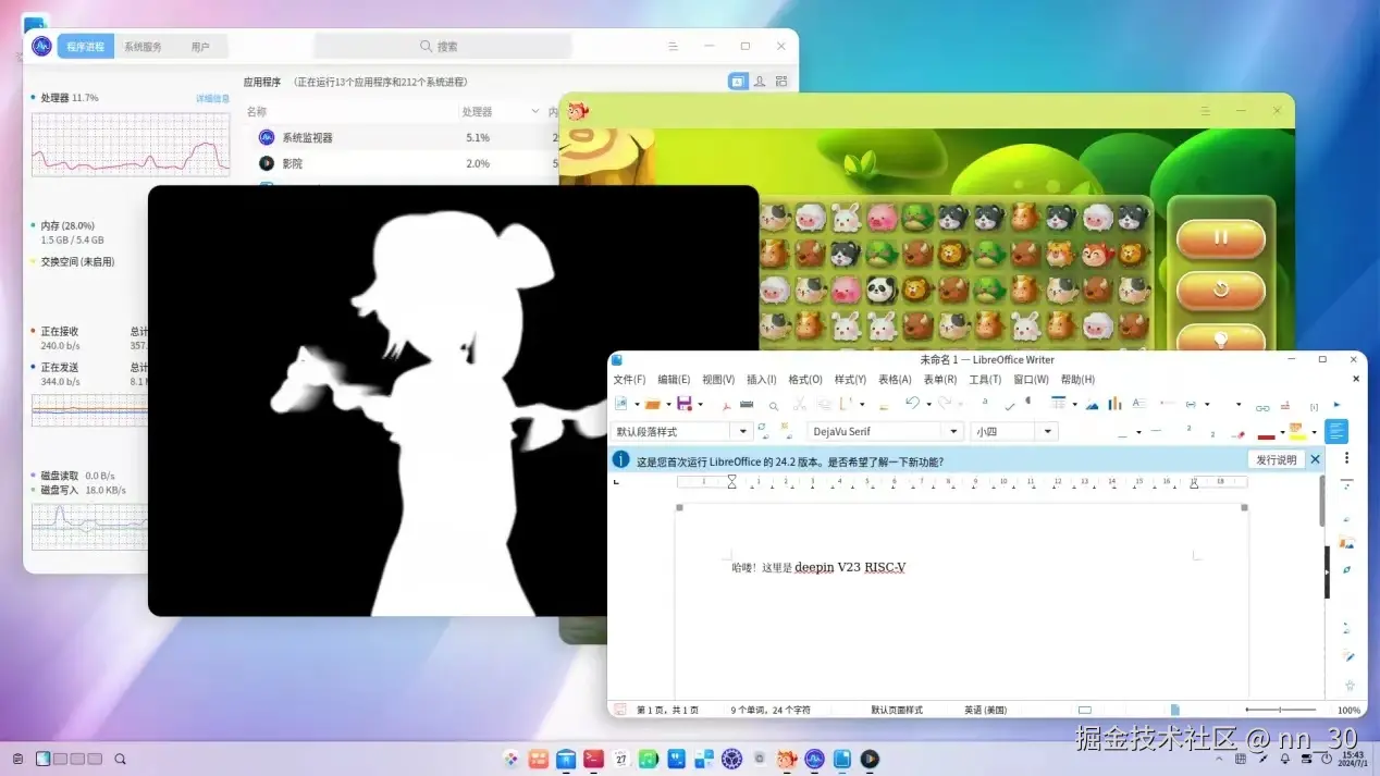 deepin内置小游戏连连看,mpv视频播放器,LibreOffice,系统监视器
