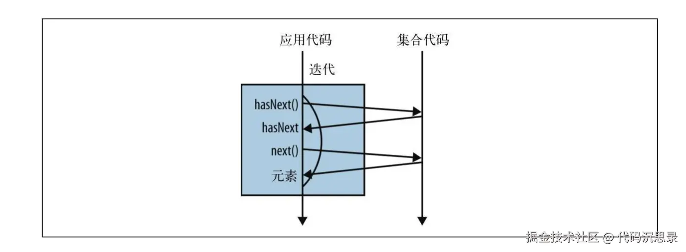 for循环属于是外部迭代,其工作原理:首先调用iterator方法,产生一个新的Iterator对象,进而控制整个迭代过程,这就是外部迭代。迭代过程通过显式调用Iterator对象的hasNext和next方法完成迭代。