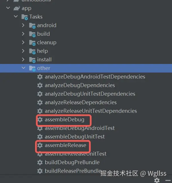 - build app工程 , 或者点击 app task的 assembleDebug 如下图: