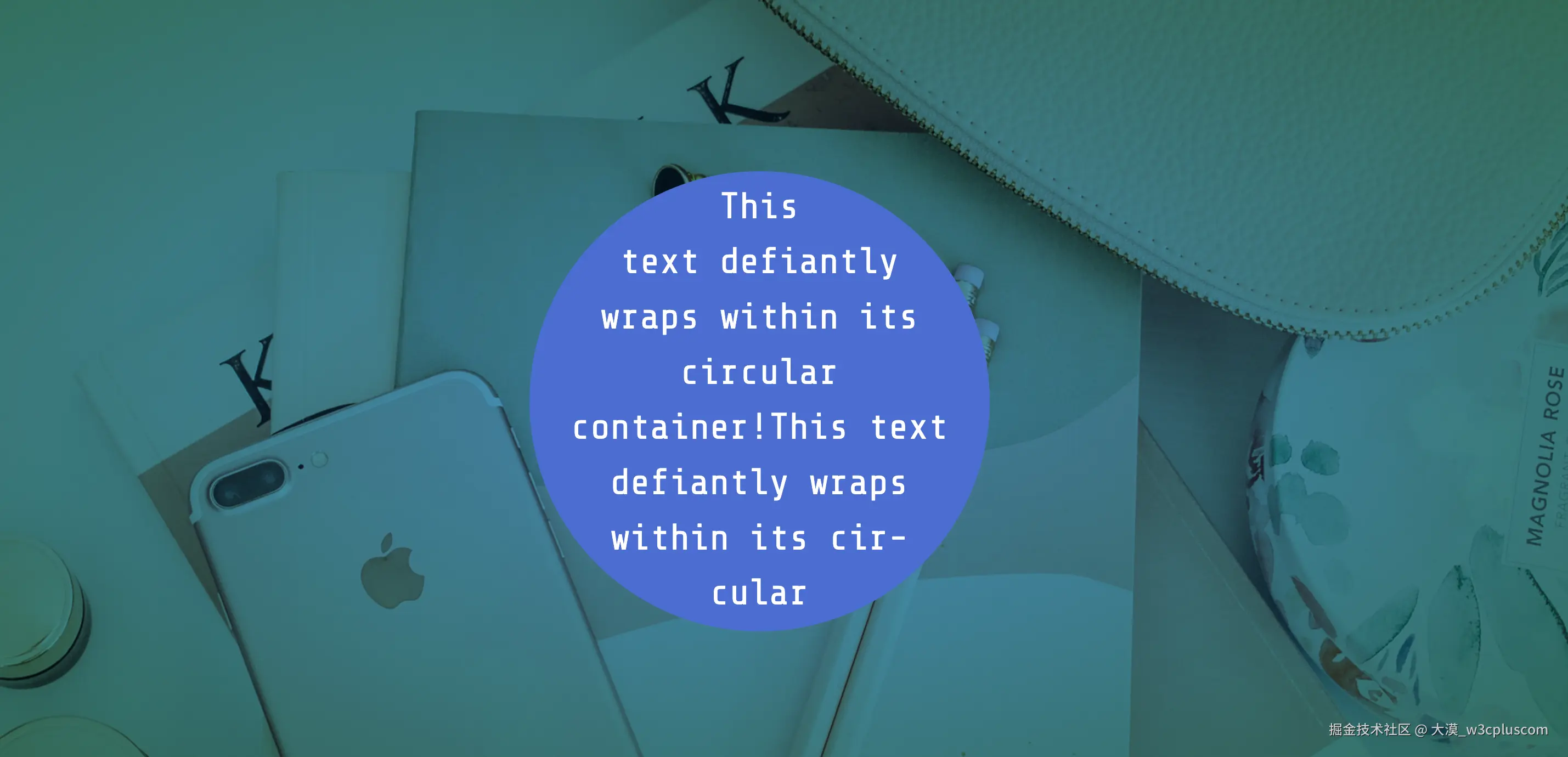 circle()另外还可以运用于CSS Shapes中的shape-outside或shape-inside中,实现一些打破规则布局的效果,比如下图: