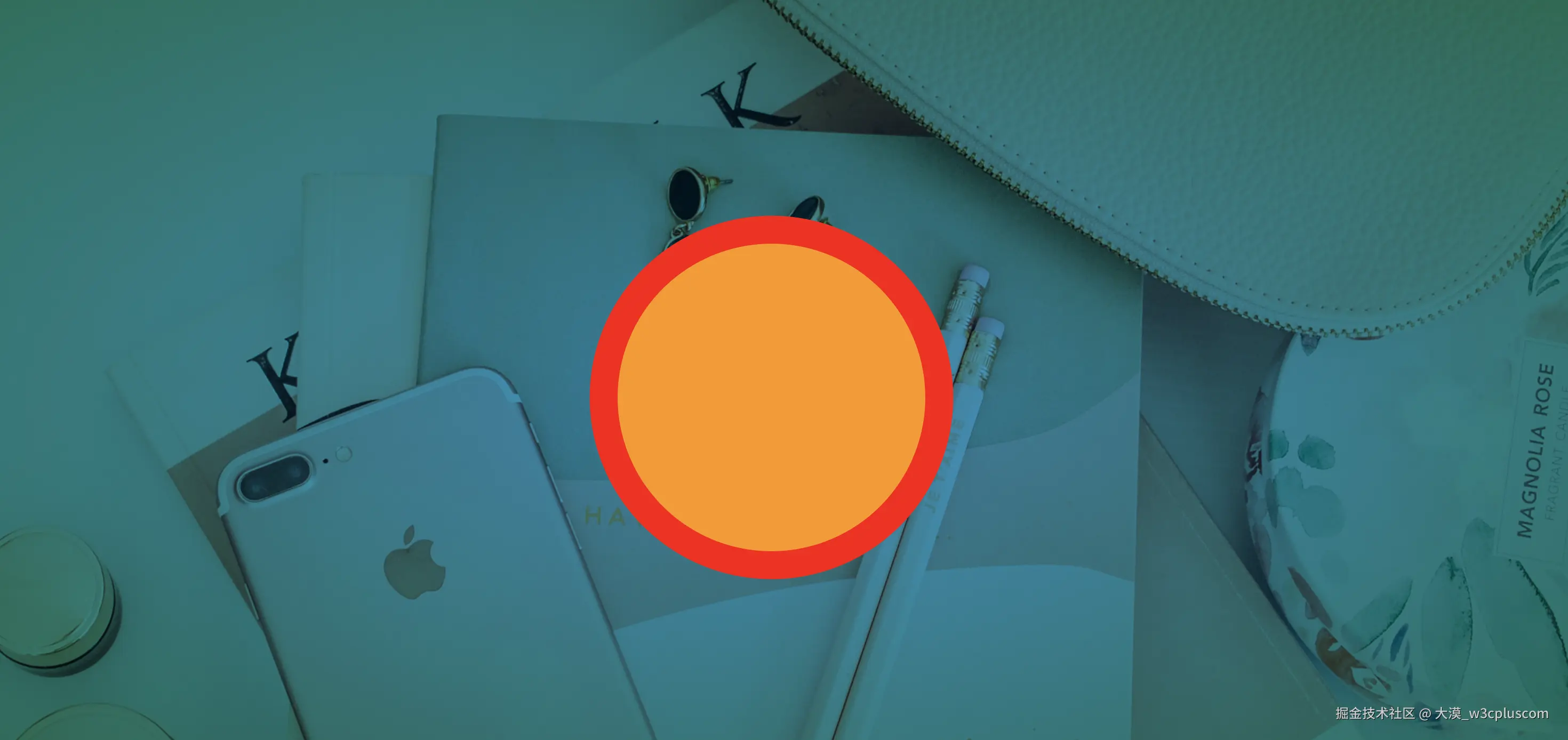 正如上图所示,我们可以使用radial-gradient来绘制圆形,通过background-image填充到元素中。