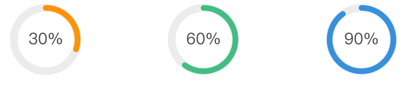而SVG制作圆的使用场景也很多,比如在很多图表的运用场景就特别的明显。另外在实现一些圆形进度条,使用SVG会更容易。比如下面这个示例效果:
