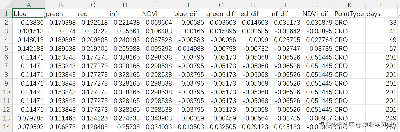 column_need = ["blue", "green", "red", "inf", "NDVI", "NDVI_dif", "days", "sola", "temp", "prec", "soil", "blue_h", "green_h", "red_h", "inf_h", "ndvi_h", "blue_h_dif", "green_h_dif", "red_h_dif", "inf_h_dif", "ndvi_h_dif"]