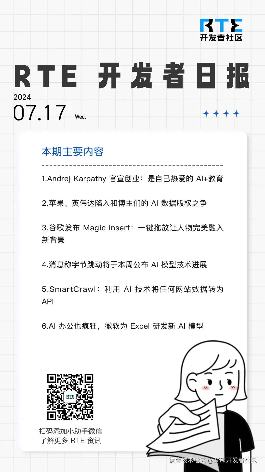 我们欢迎更多的小伙伴参与「RTE 开发者日报」内容的共创,感兴趣的朋友请通过开发者社区或公众号留言联系,记得报暗号「共创」。