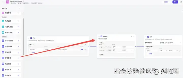 我们先来分析一下证件照和普通照片的区别: 其实无非就是换了一个背景而已。所以只要在扣子图像流中有替换背景的工具,就可以搞定了。刚刚好,扣子图像流中正巧有背景替换的工具。