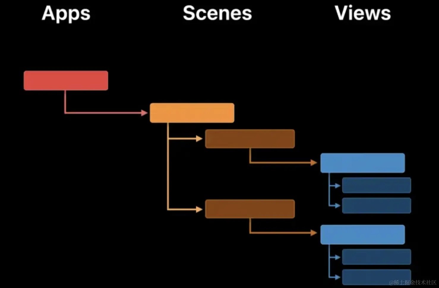 Scene:表示应用程序的一个视图层级,通常是 WindowGroup,表示主窗口的内容。