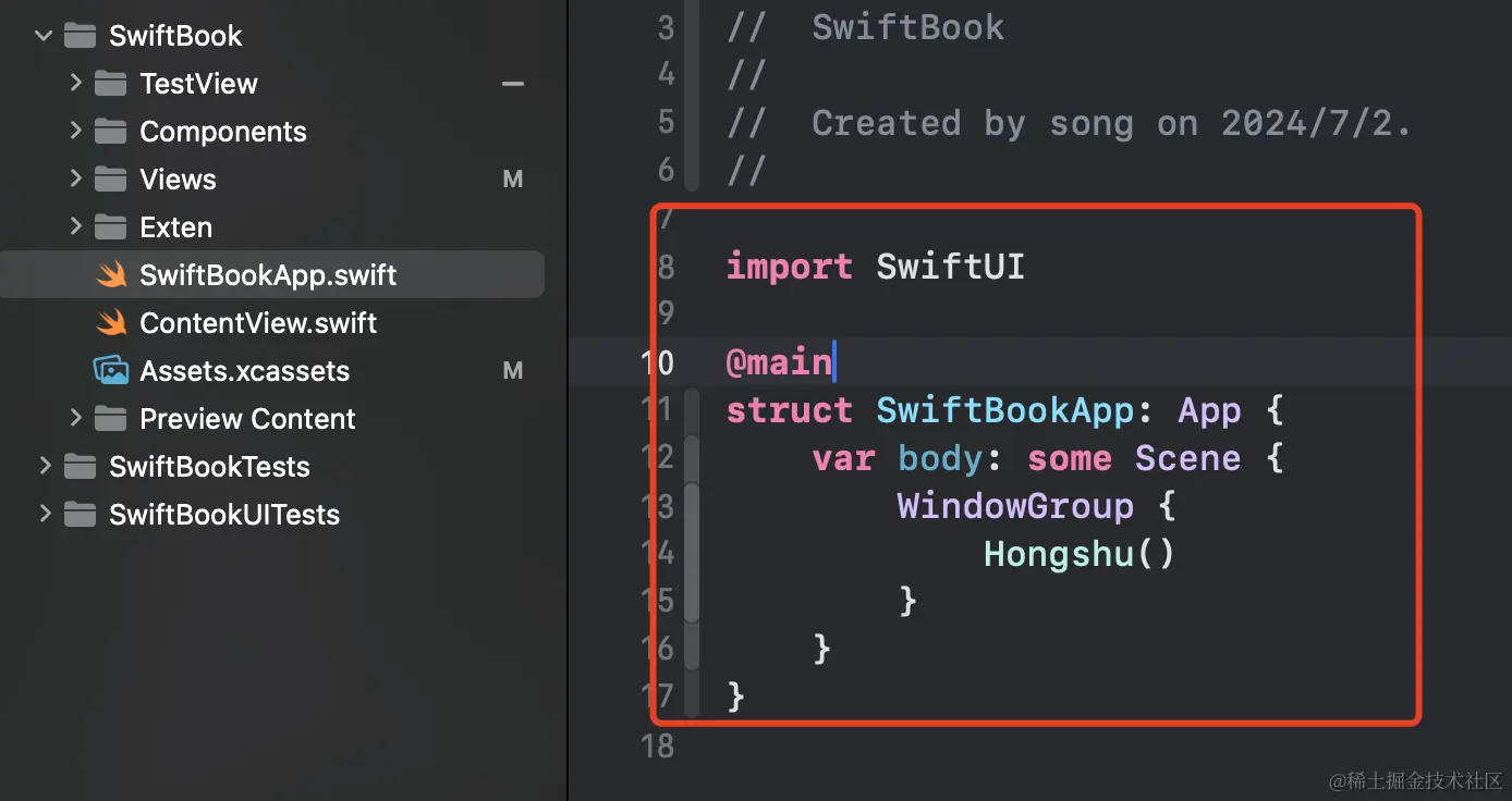 新创建的swiftui项目中我们应该先要了解一下app的入口函数在哪里,并了解大概的含义。