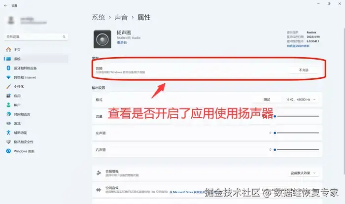 步骤2:查看系统是否允许应用将扬声器应用于音频,如果没有,那么你可以将其打开。
