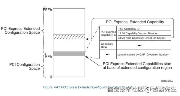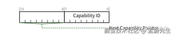 此外 PCI / PCI⁃X 和 PCIe 设备还扩展了 0x40 ~ 0xFF 这段配置空间, 也属于标准配置空间, 叫做能力寄存器, 即PCI Express Capability. 在这段空间主要存放一些与 MSI 或者 MSI⁃X 中断机制和电源管理相关的 Capability 结构。
