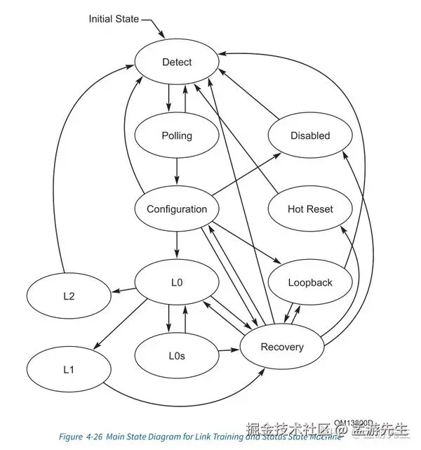 包括detect, polling, configuration等, 大致了解下先. 在固件下需要做PCIE设备的链接, 就是从detect状态切换至L0状态.
