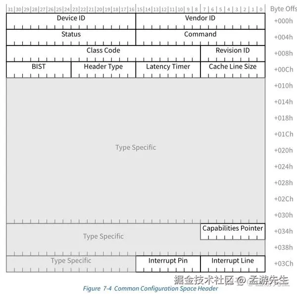 身为软件开发人员, 要了解基本的配置空间中的寄存器含义, 比如Vendor ID指厂商, Class Code指设备类型等. 软件开发时一定会根据相应的设备类型或厂商信息做适配.
