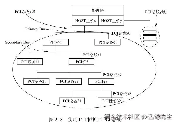 图中与 PCI 总线相关的模块包括: HOST 主桥、 PCI 总线、 PCI 桥和 PCI 设备。在 PCI 总线中有三类设备: PCI Agent 设备和桥设备。如PCIE的网卡, 显卡, RAID卡等, 均属于PCIE的Agent 设备. 而其插槽, 就可以认为是一个PCIE桥设备. 插槽通常如下图: