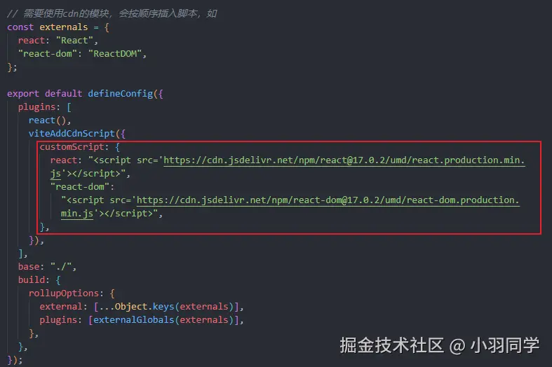 plugins: [react(), viteAddCdnScript({})],