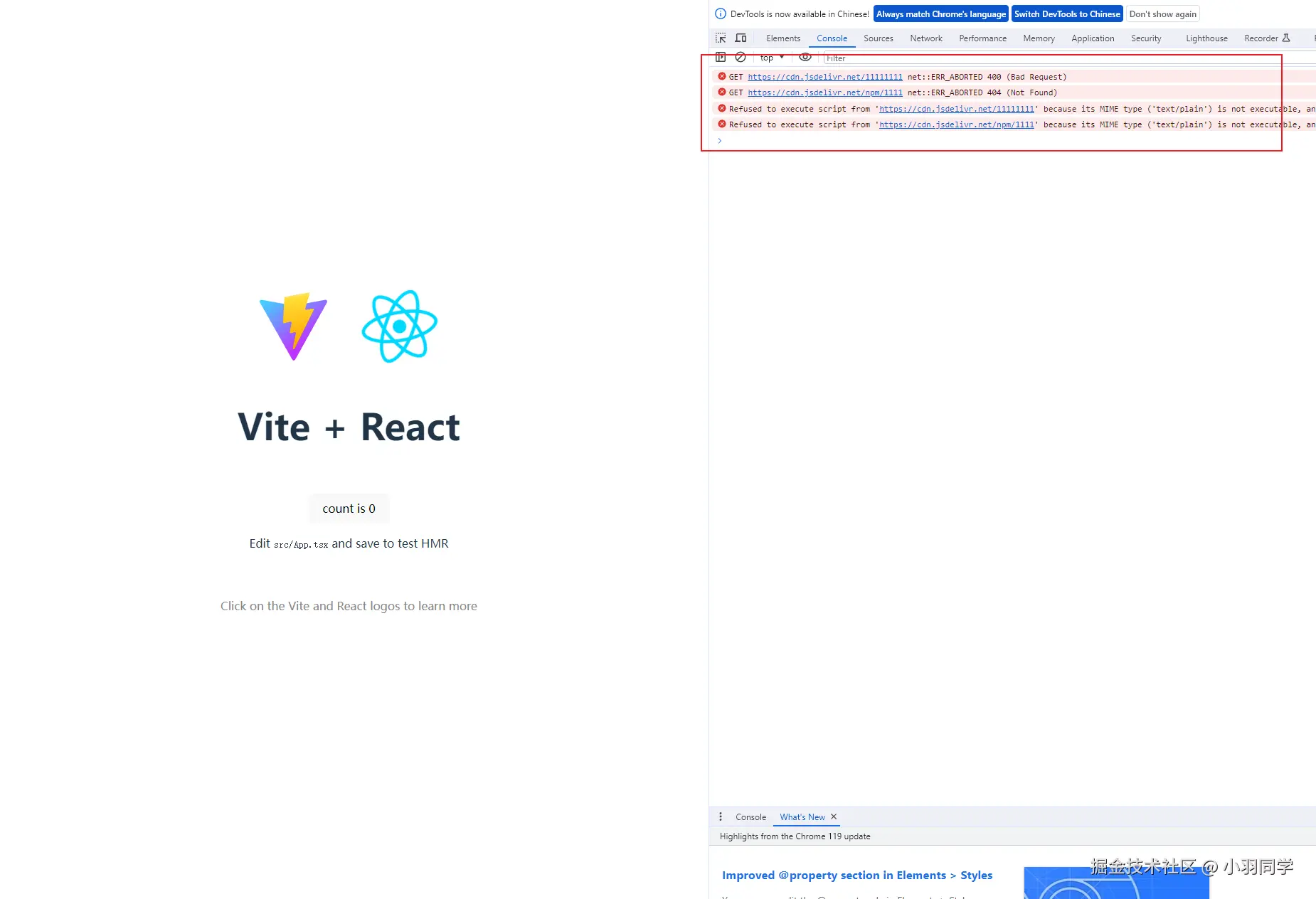 这样子下来,虽然打开控制台会看到第一个cdn加载报错,但我们在后续又直接加载了新的cdn,所以不影响网站的使用了。