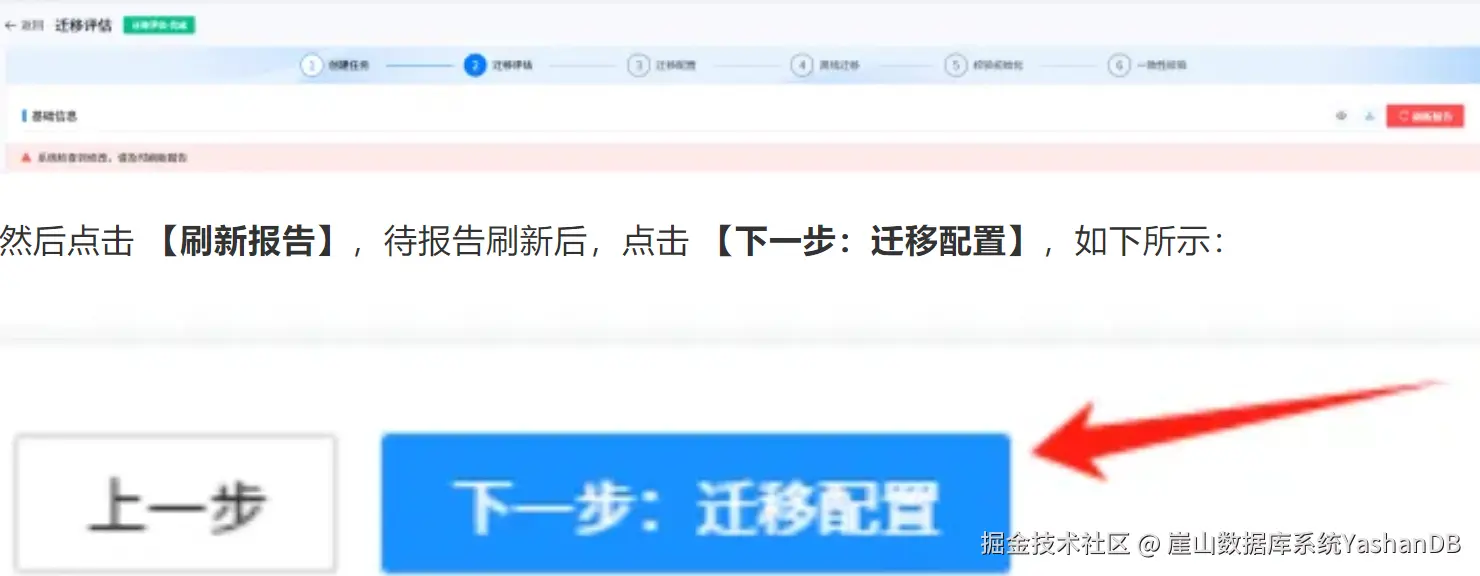 然后点击 【刷新报告】,待报告刷新后,点击 【下一步:迁移配置】,如下所示: