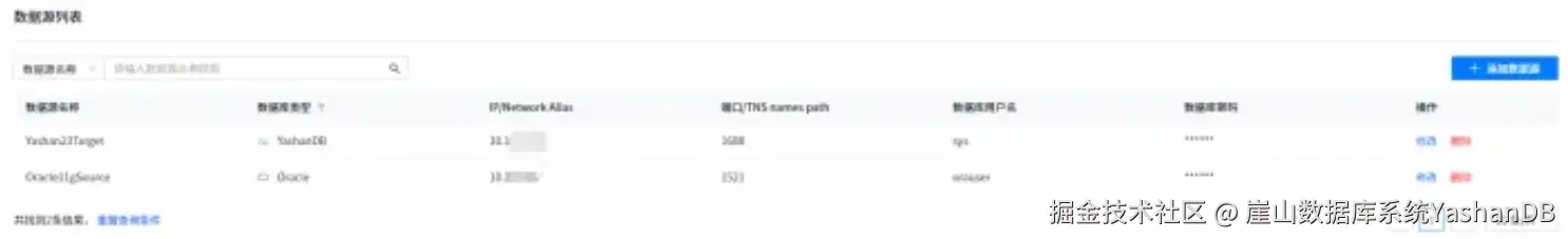 数据源类型选择 YashanDB,端口本次采用默认端口,然后点击测试连接,成功连接会有返回提示,然后点击确认,目标端数据源添加后,如下所示: