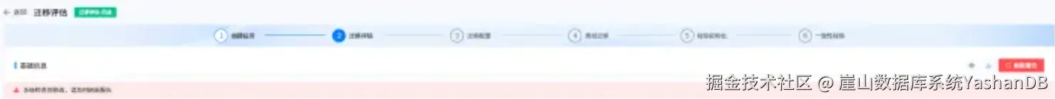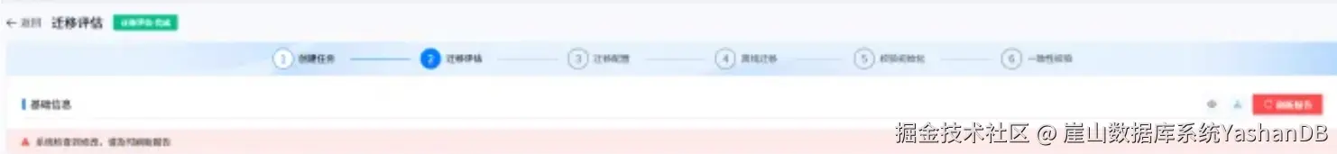 上述信息填写后,可点击【保存】,会暂存填写的任务信息,此时任务状态为评估编辑中。若希望进行评估,可点击【下一步:开始迁移评估】进入迁移评估阶段,如下所示: