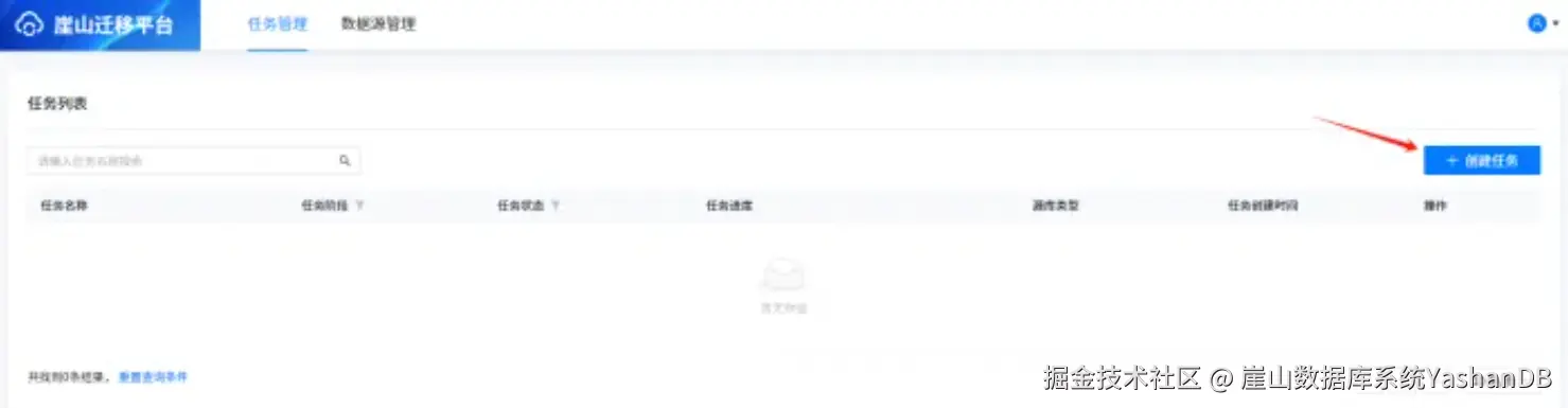 创建任务是进行数据库迁移评估的起点,首先要先创建一个迁移评估任务。点击【任务管理】,进入任务管理界面。