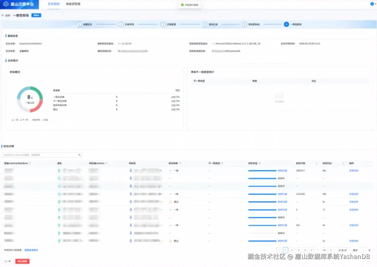 如上图所示,点击【下一步:开始一致性校验】,如下所示: