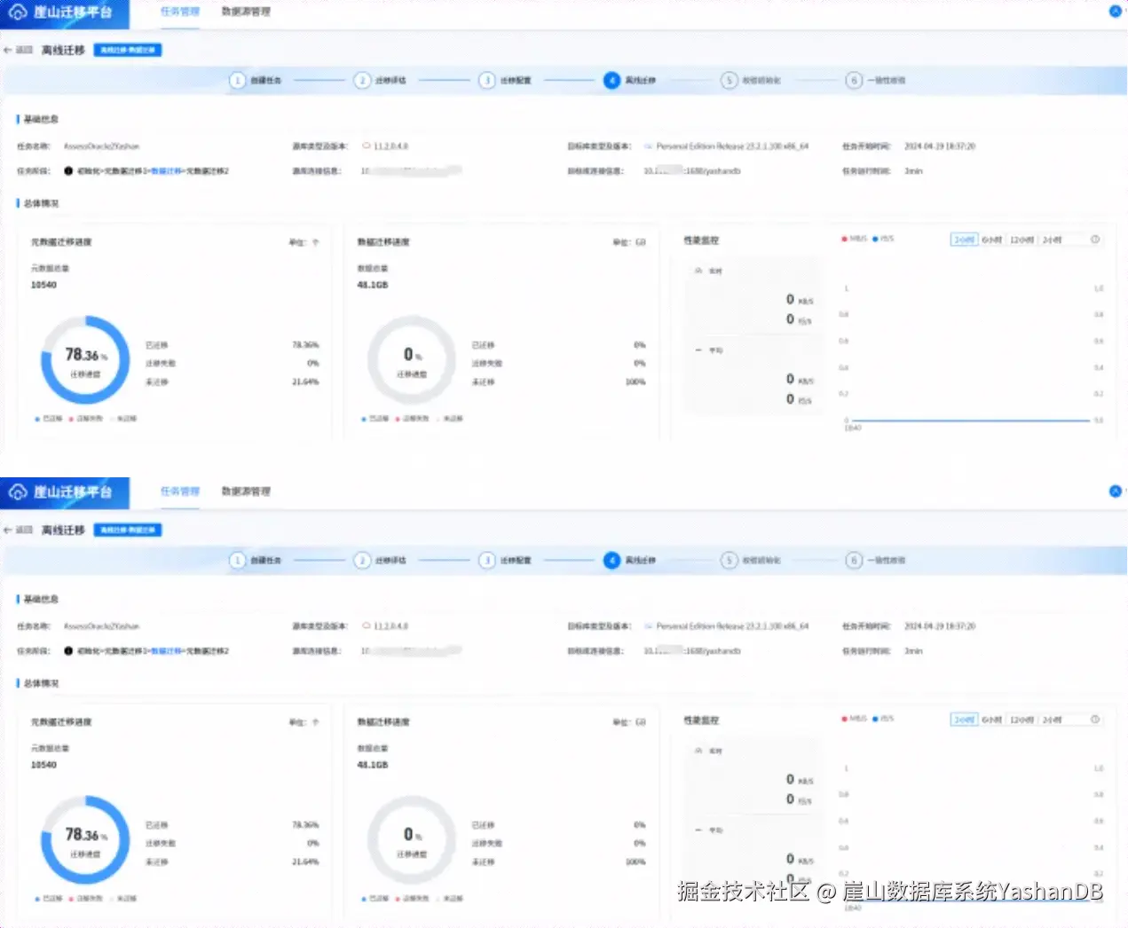 上述操作完成后,点击【下一步:离线迁移】进入离线迁移界面,在迁移过程中,会显示迁移进度,迁移结束后,如下所示: