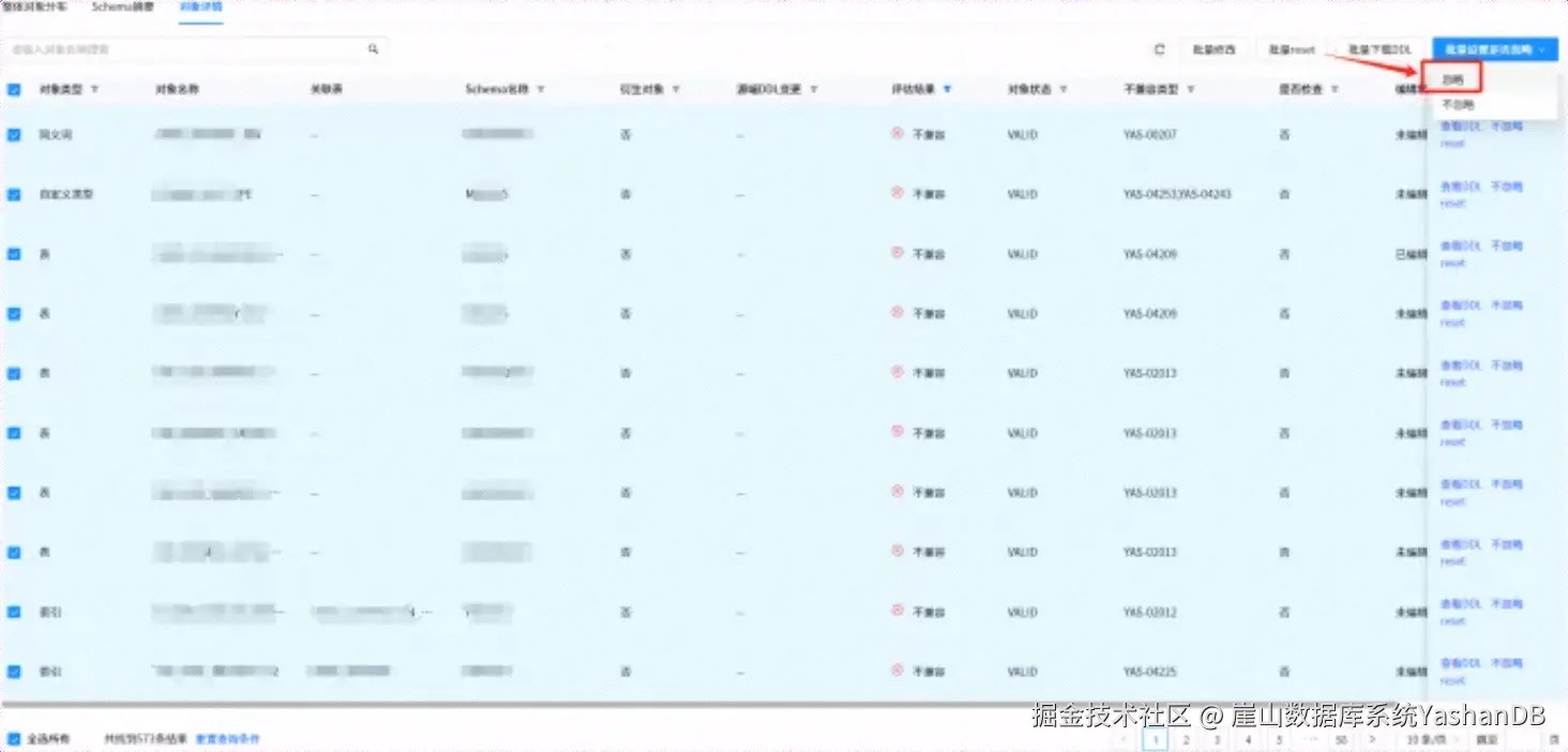 选择批量忽略不兼容对象,然后点击 【迁移配置】