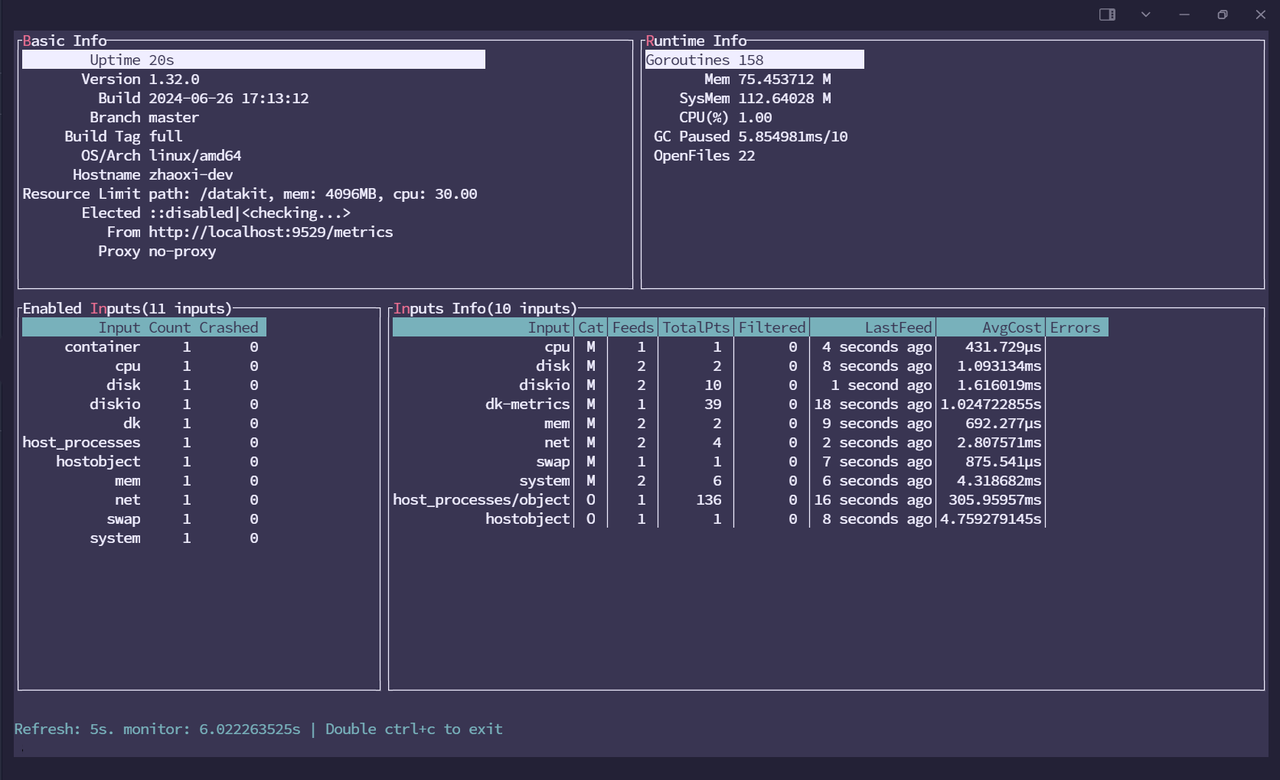 执行安装命令成功后使用命令datakit monitor可以验证 DataKit 是否成功安装。