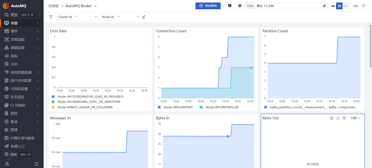 至此,我们通过观测云成功监测了 AutoMQ 集群状态,并且仪表盘中的数据都是由 Metrics 指标进行聚合或查询的方式得到的。