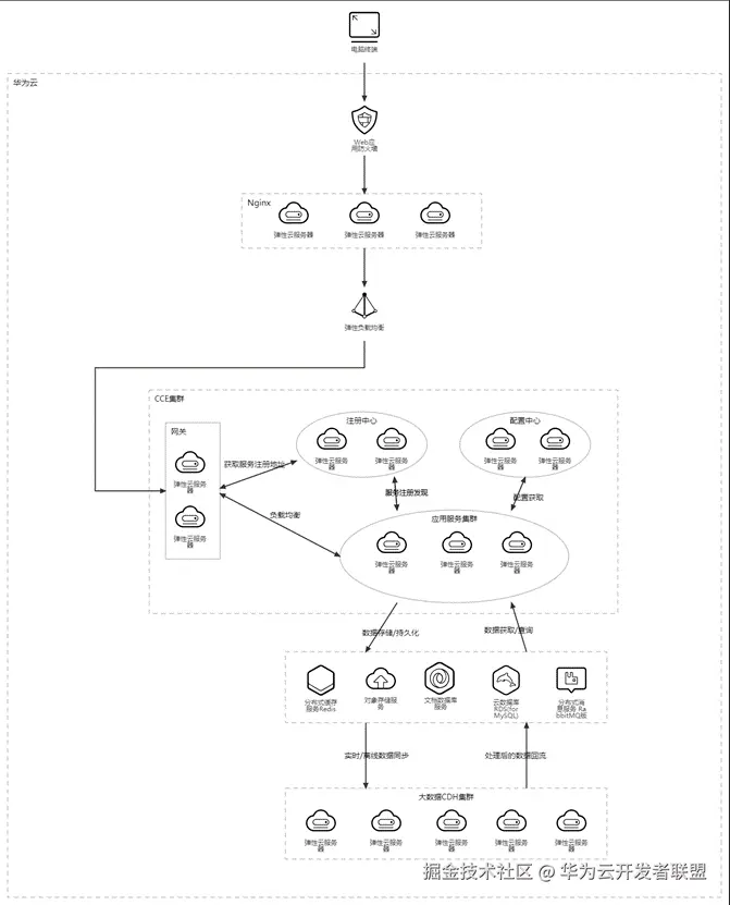 数据量过大是教育平台常见的问题,所有的数据都存在同一种数据库中显然是不合理的,这对于数据库的承载能力有很大要求,而且数据处理和分析也比较困难,华为云DTSE推荐使用Redis做缓存用于缓解数据库压力,同时使用文档数据库DDS随时根据业务情况弹性伸缩所需资源,再使用OBS来存放集群所产生的数据和数据库备份或者日志文件;对于数据的处理,建立大数据CDH集群通过实时/离线方式来实现,拉取CCE集群产生的业务数据进行响应的计算处理,最终将处理后的数据回流回业务系统。
