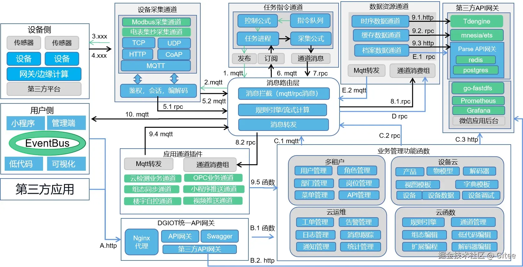 轻量级物联网开源平台,6分钟快速部署,千万级设备承载、电信级稳定性。物模型-规则引擎-数据通道-组态页面全流程低代码开发、前后端完全开源、支持多行业工业协议。