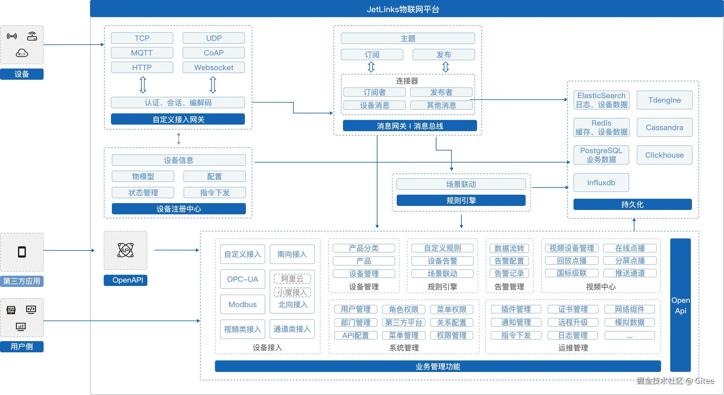 一个开源的物联网基础开发平台,提供了物联网及相关业务开发的常见基础功能,能帮助你快速搭建自己的物联网相关业务平台。