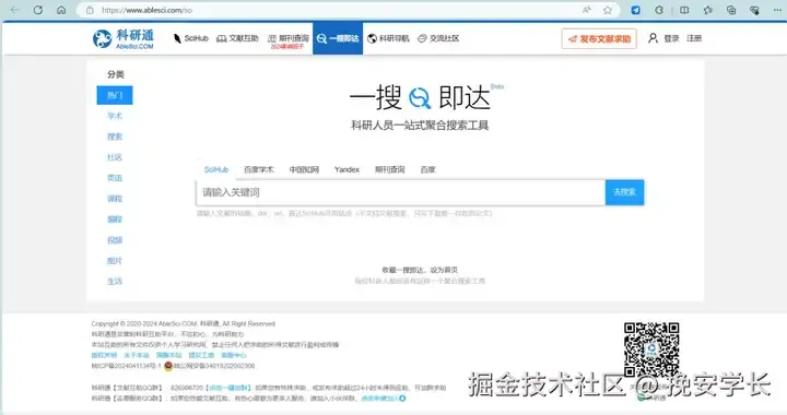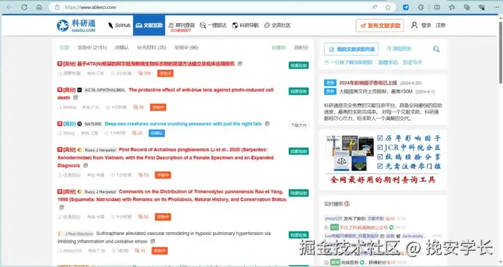 开放的科研学术平台,支持期刊文章的搜索,还提供了免费的科研管理工具。