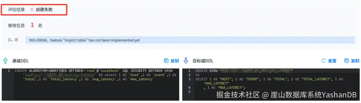 问题现象:YMP迁移过程中不兼容语句提示“implict table"报错。