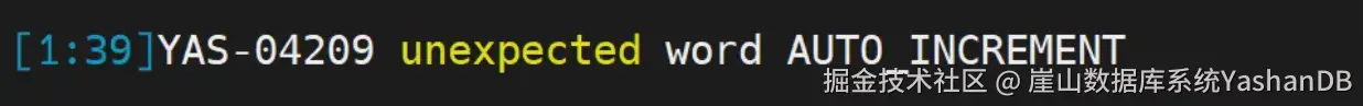 问题现象:YashanDB建表语句中使用auto_increment关键字执行失败。