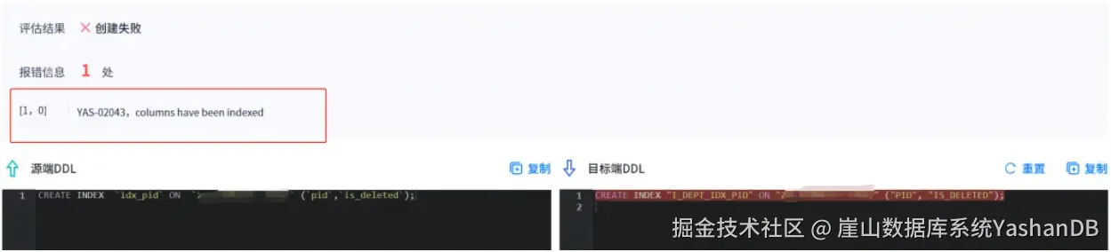 原因分析:MySQL支持在主键索引列再创建普通索引。YashanDB不支持该功能。