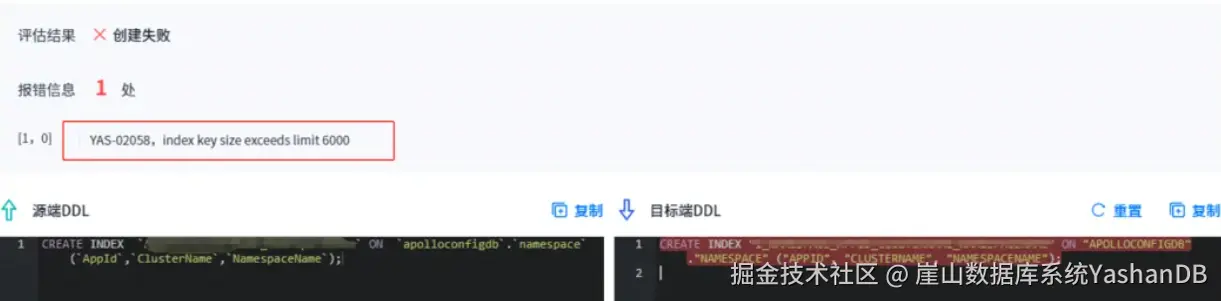 问题现象:YMP迁移评估不兼容对象提示索引字符长度超出。
