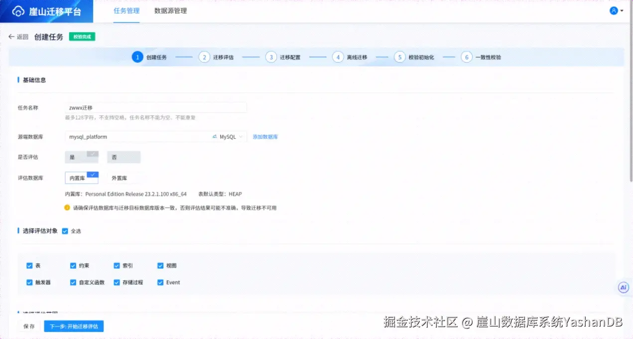 YMP迁移流程如下图所示,主要包含创建任务、迁移评估、迁移配置、离线迁移、数据初始化和一致性校验这6个流程。