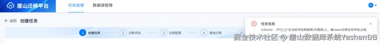 原因分析:新建的迁移任务与YMP平台现有的迁移任务中存在同名的schema。