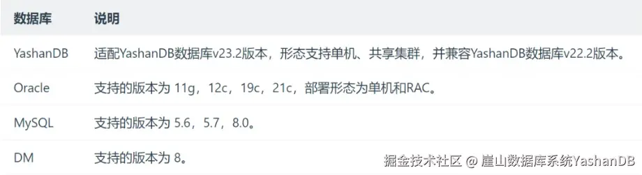 4.1.5 YMP内置库版本必须大于或等于目标端数据库版本