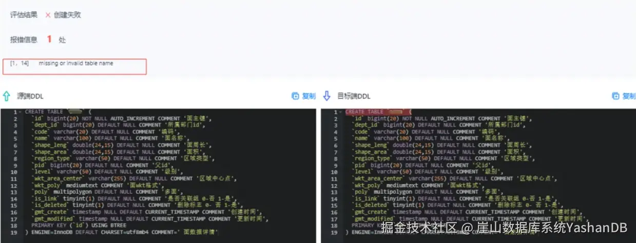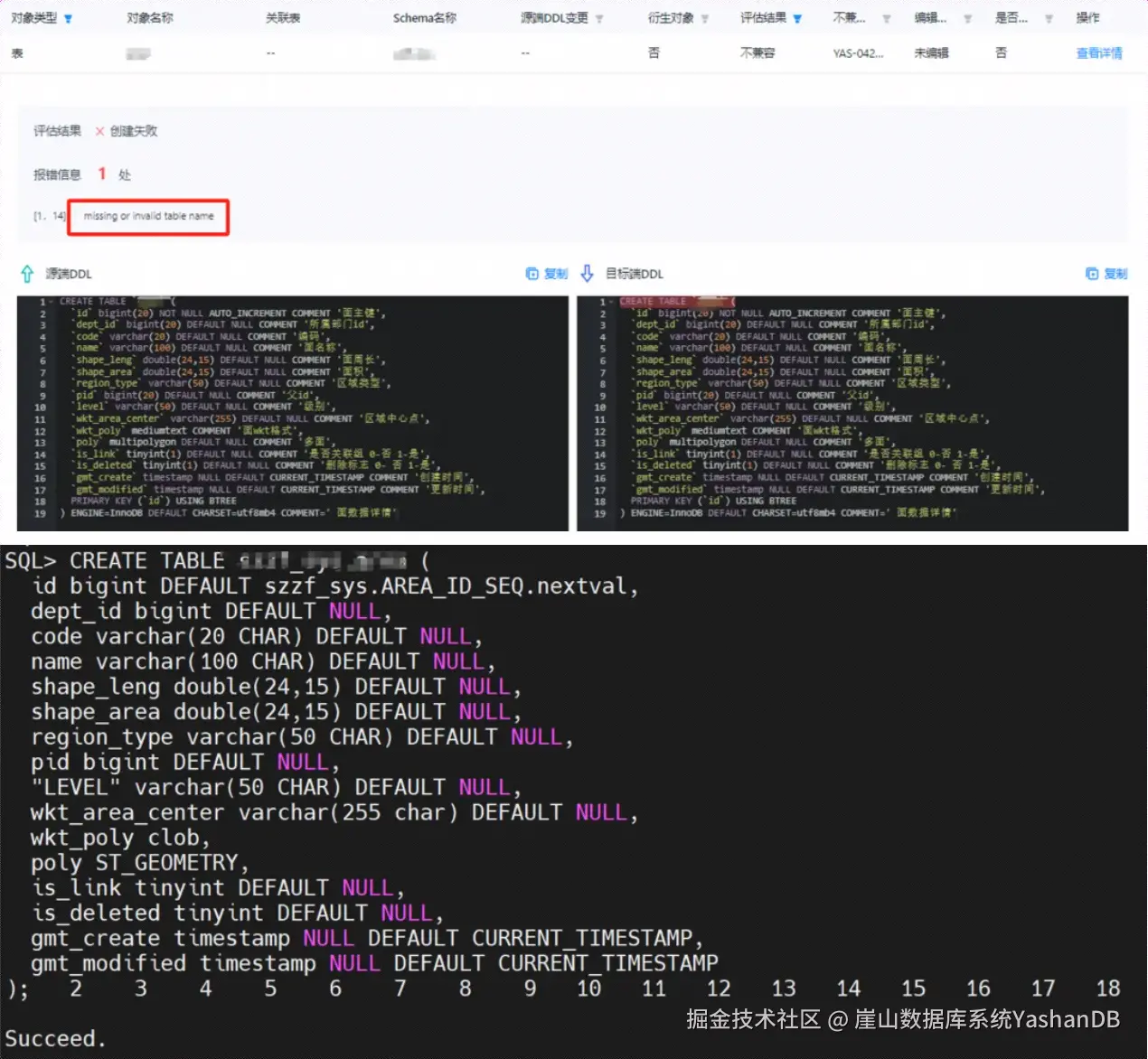 问题现象:不兼容SQL改造过程中,执行建表语句遇到关键字冲突问题。