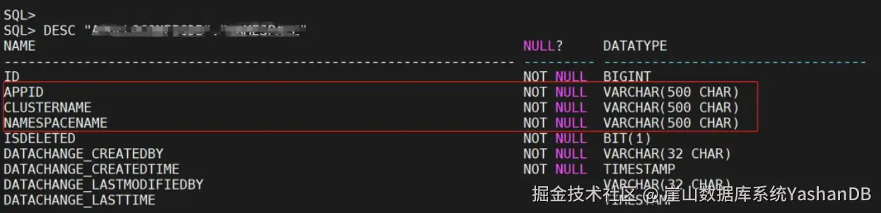 原因分析:建表过程中有个字段名为LEVEL,是YashanDB的保留字,所以报错了。