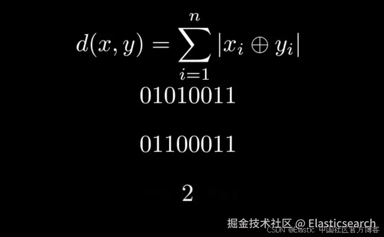 现在,由于我们不再处于 float 领域,我们不能使用典型的距离函数,如 cosineSimilarity 或 dotProduct。相反,我们利用汉明距离利用每个维度都是单个位的优势。
