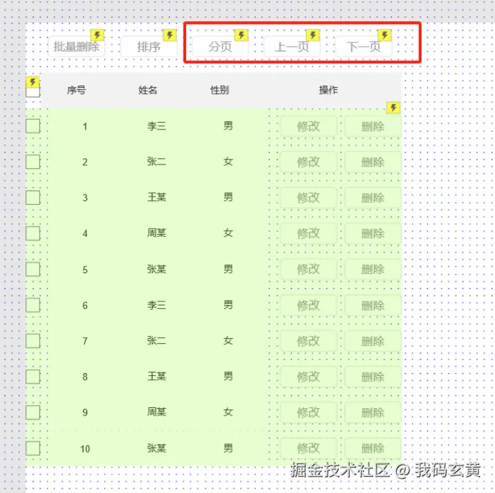 最后设置一下【批量删除】按钮的事件,【点击事件】 【删除标记行】