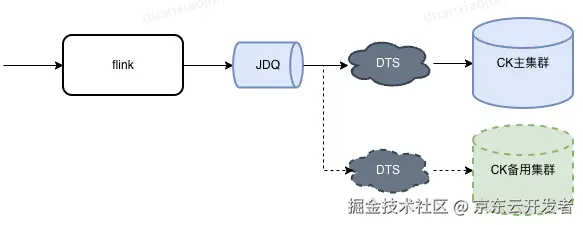 若数据需要做主备存储,我们只需要创建新的DTS任务订阅JDQ消息,将消息写入到备用的ClickHouse集群即可。