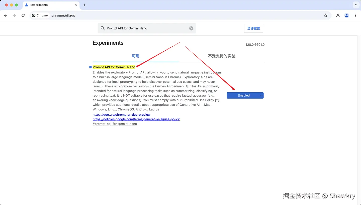 - 在顶部的搜索框中输入: Prompt API for Gemini Nano