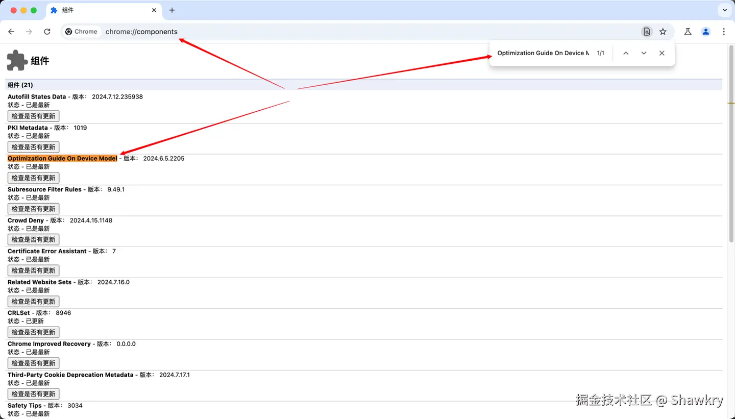 - 按住 ctrl + f 或者 command + f 在页面中国呢搜索 Optimization Guide On Device Model