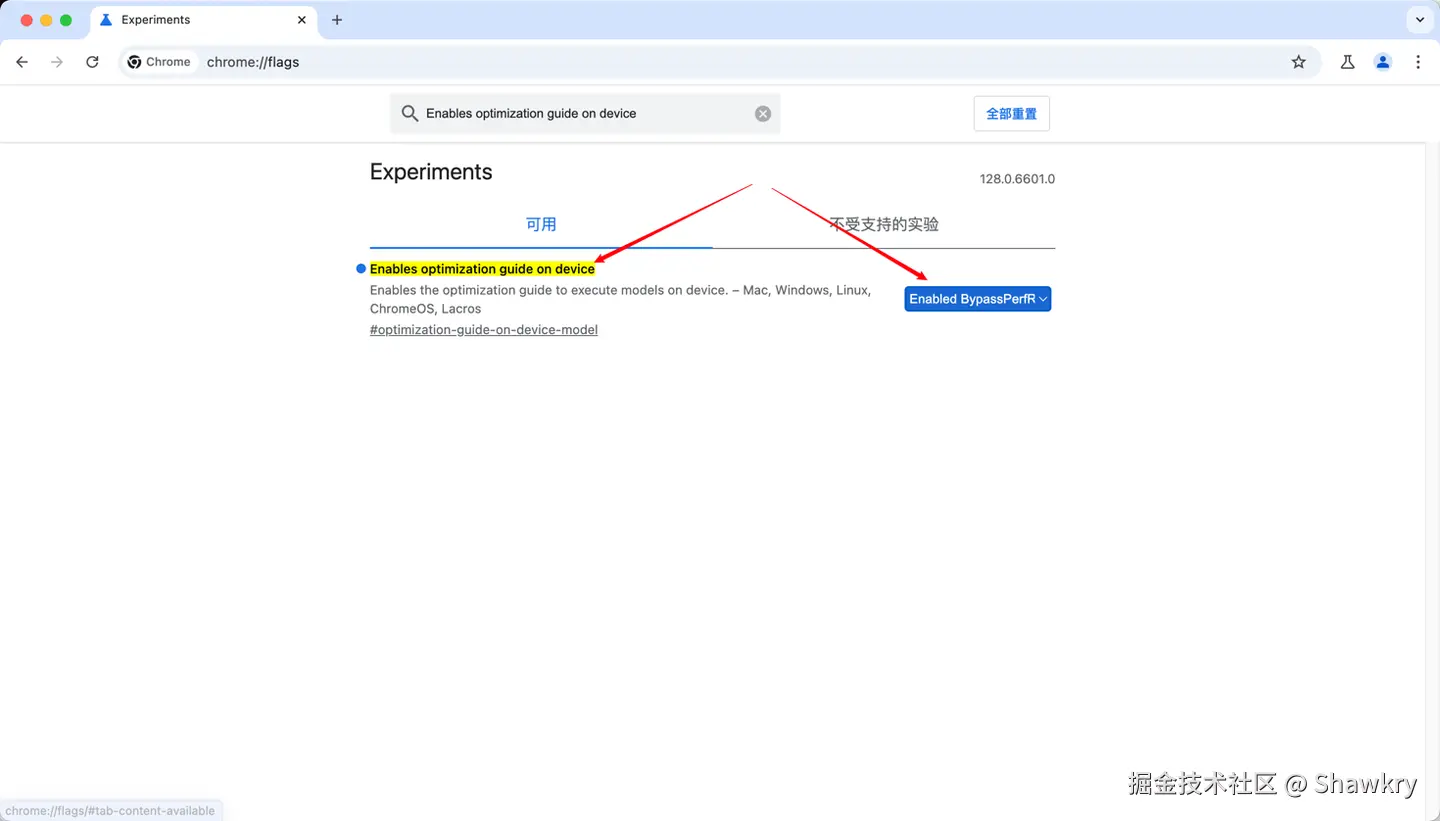 - 在顶部的搜索框中输入: Enables optimization guide on device