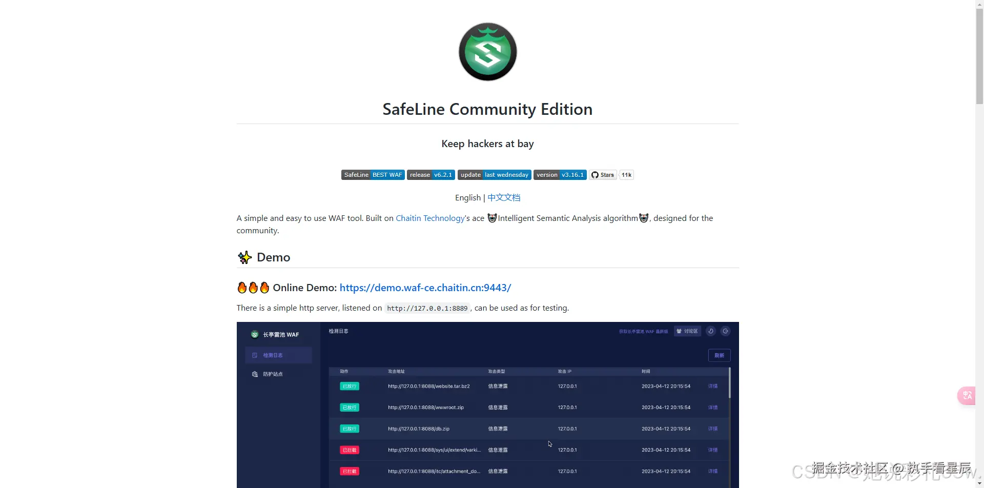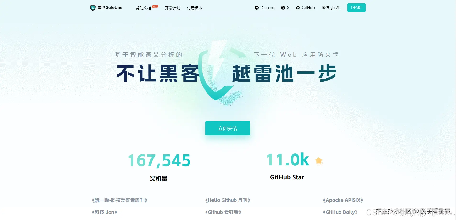 官方网站:雷池 WAF 社区版 | 下一代 Web 应用防火墙 | 免费使用